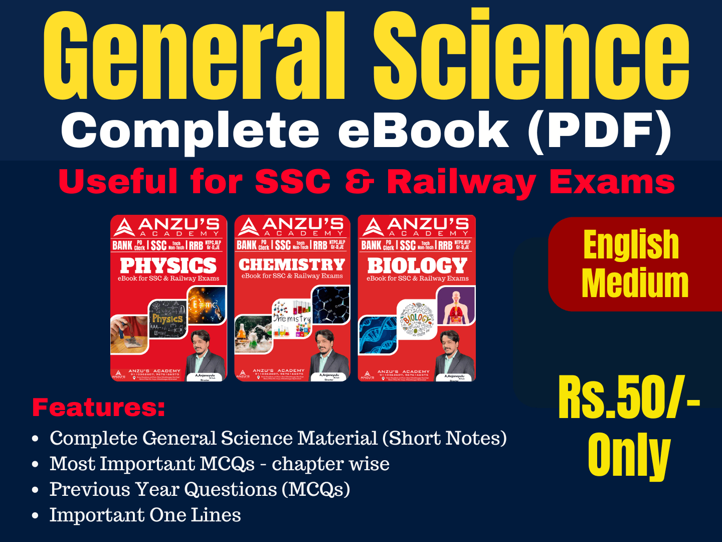 General Science eBook PDF Material English Medium Useful for SSC & Railway Exams Features: Complete General Science Material (Short Notes) Most Important MCQs - chapter wise Previous Year Questions (MCQs) Important One Lines
